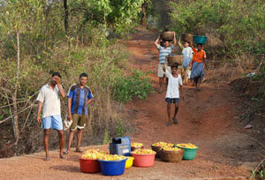 HEAD LOAD OF APPLES BEING BROUGHT DOWN HILL |